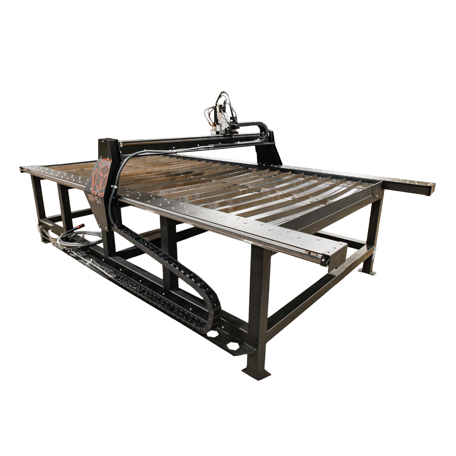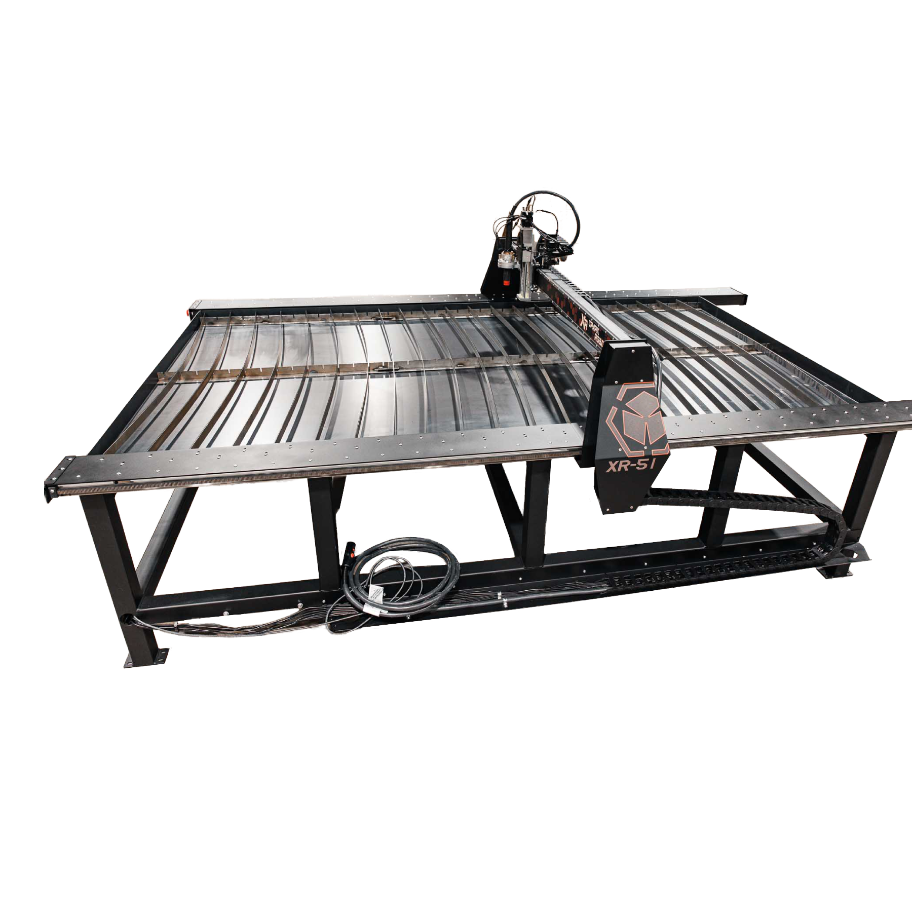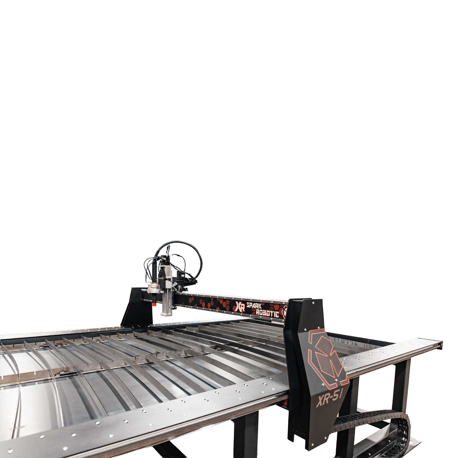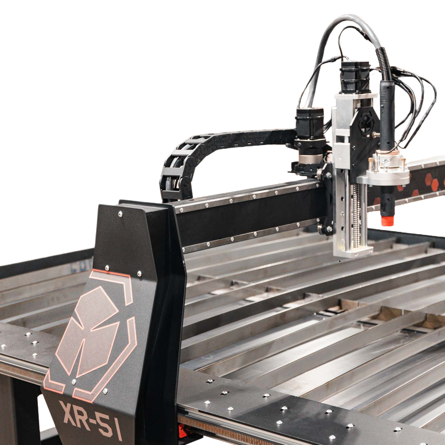 The XR51 CNC Plasma machine is our largest model to date, featuring a rugged welded steel frame for exceptional durability. Engineered for high performance, this machine delivers reliable, efficient, and accurate cutting. The XR51 comes standard with planetary gear reduction on the X and Y axes, hardened linear V rails on the X axis, a linear rail on the dual-motor Y axis, built-in THC, and high-precision planetary gearboxes. The tough powder-coat finish helps prevent rust and ensures that your machine lasts well beyond its 2-year warranty. The work area slats are easily removable for cleaning and replacement. Thoughtful features include a side-load design, integrated steel storage, a torch stand, and a wiring harness for our in-house controllers, making it safe and convenient to work around your equipment. A new Windows 11 laptop with the necessary software is included. For enhanced functionality, a high-spec CAD/CAM laptop is available upon request for $2,200.